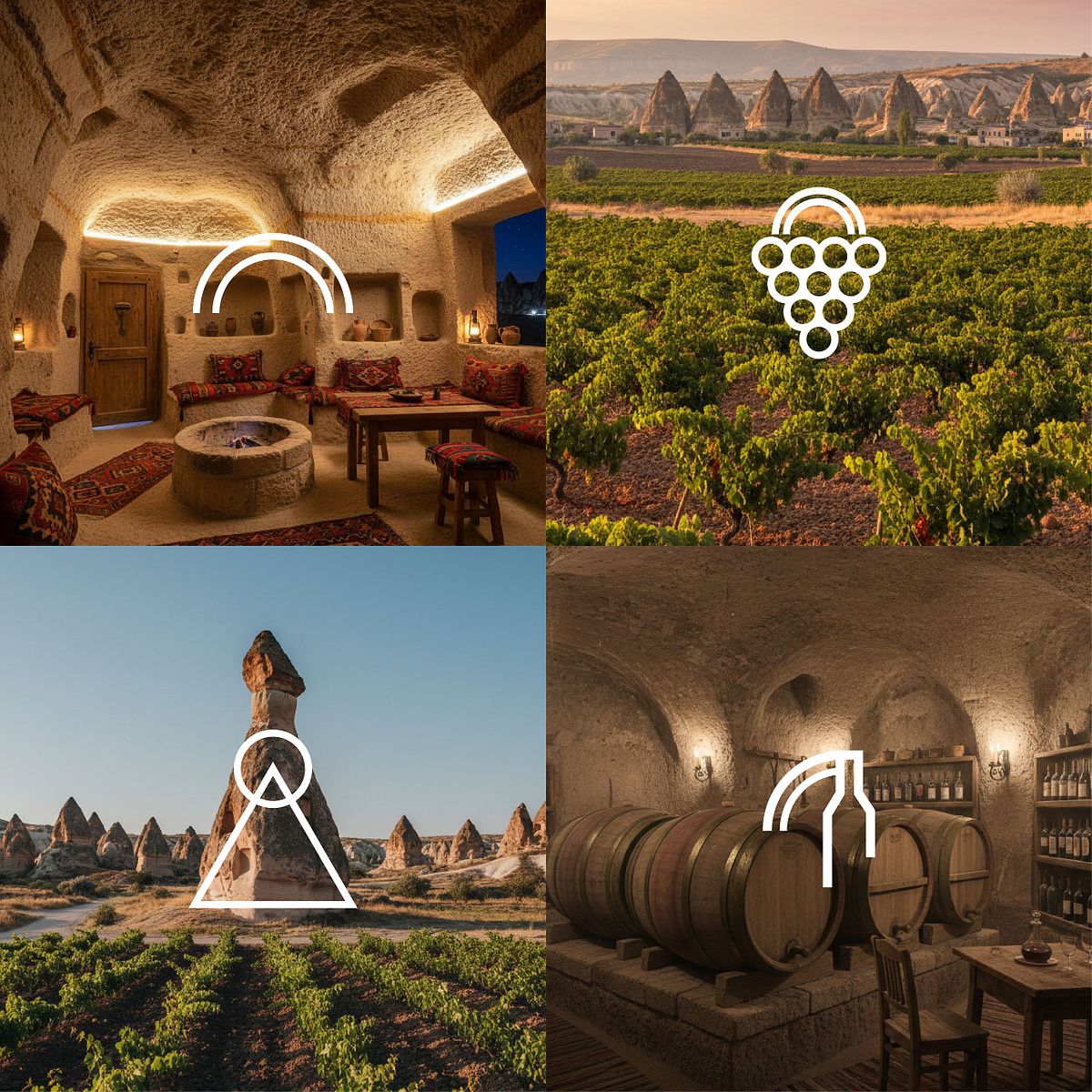 Die visuelle Gestaltung ist von der einzigartigen Höhlenarchitektur Kappadokiens und natürlichen Landschaftsformen inspiriert. Organische Linien und reduzierte Formen vermitteln Authentizität, Ruhe und eine zeitlose Atmosphäre.