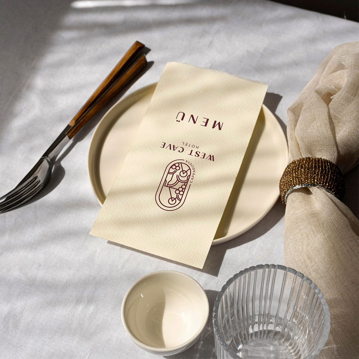 Die Markenidentität verbindet Eleganz mit regionaler Geschichte. Warme Farbtöne, feine Linien und symbolische Elemente unterstreichen den exklusiven Charakter des West Cave Hotels und schaffen ein hochwertiges Markenerlebnis.